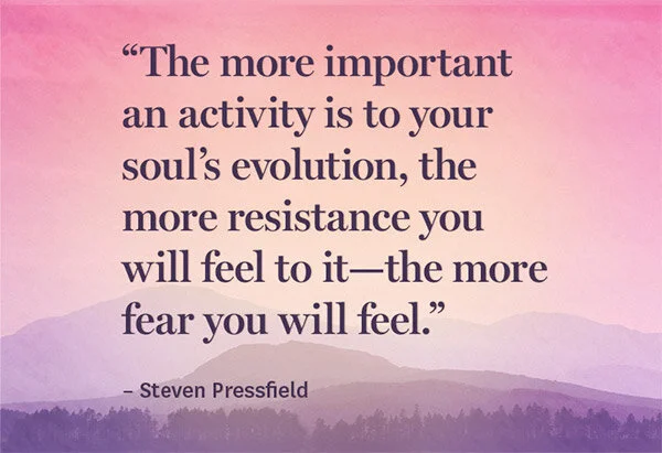 "The more important an activity is to your soul's evolution, the more resistance you will feel to it--the more fear you will feel."
